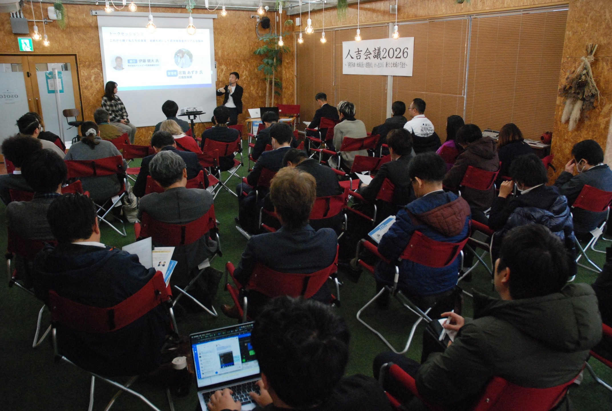本イベントは3年目の開催となり、今回は「事業承継」をテーマに実施。人吉市、熊本県球磨地域振興局などと共催し、地域内外から約50名の皆さまにご参加いただきました。